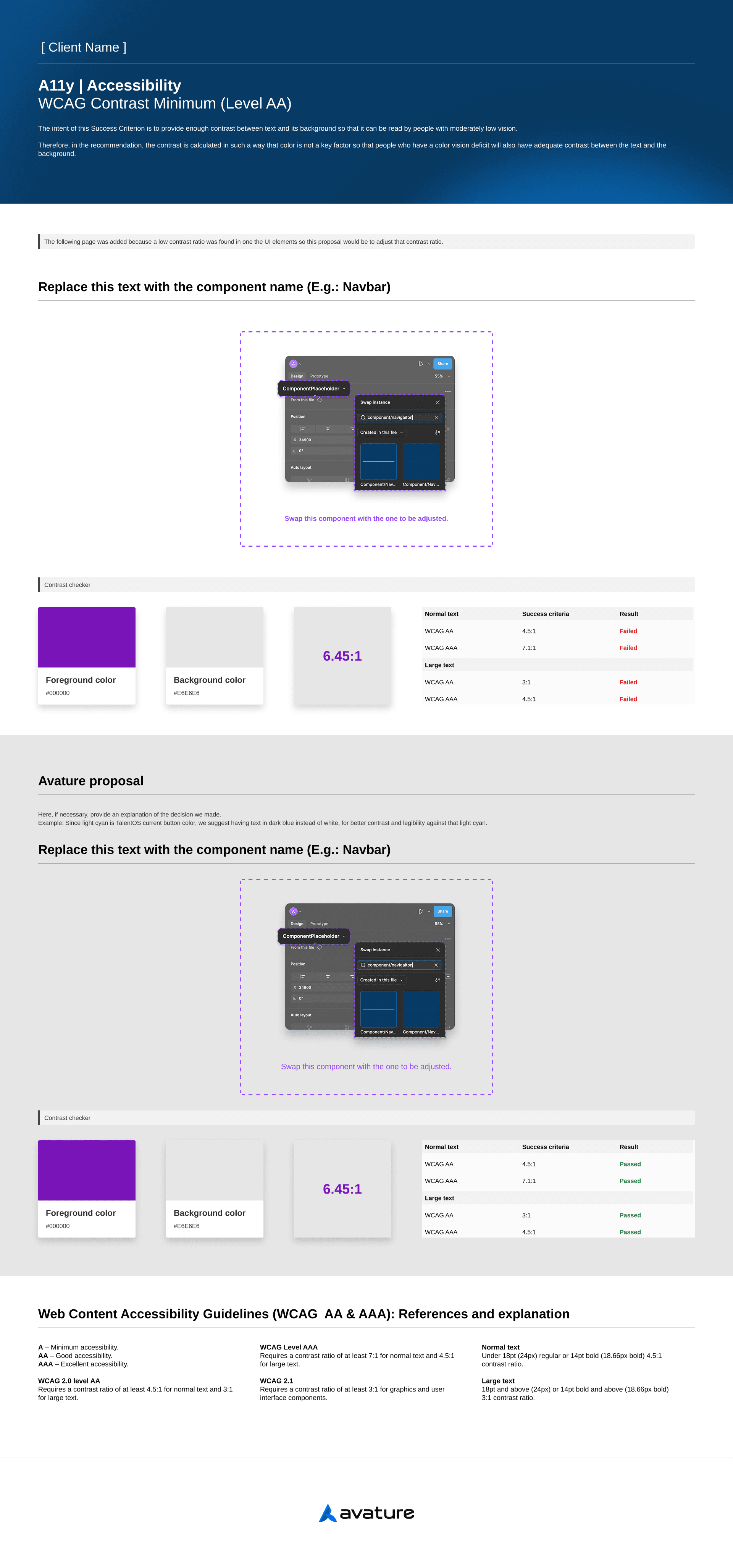In parallel, the Accessibility Considerations Document was iterated and abstracted beyond the specific client context, allowing it to evolve into a foundational accessibility framework. This framework could then be integrated into style guides and design systems for future clients, strengthening internal processes and improving accessibility readiness across projects.