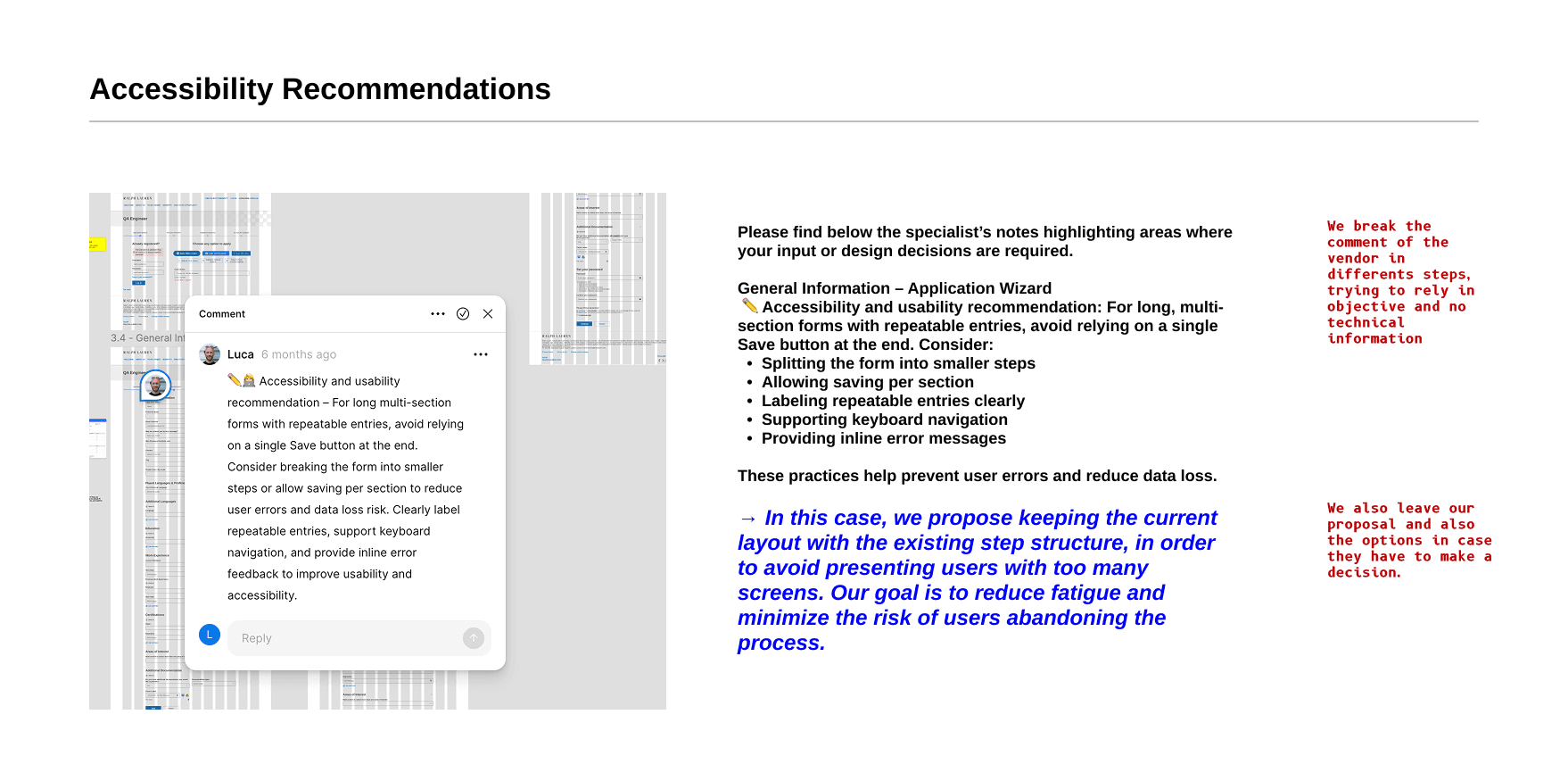 The vendor feedback was highly technical and difficult to translate into concrete design actions. To address this, I created an Accessibility Considerations document, which: