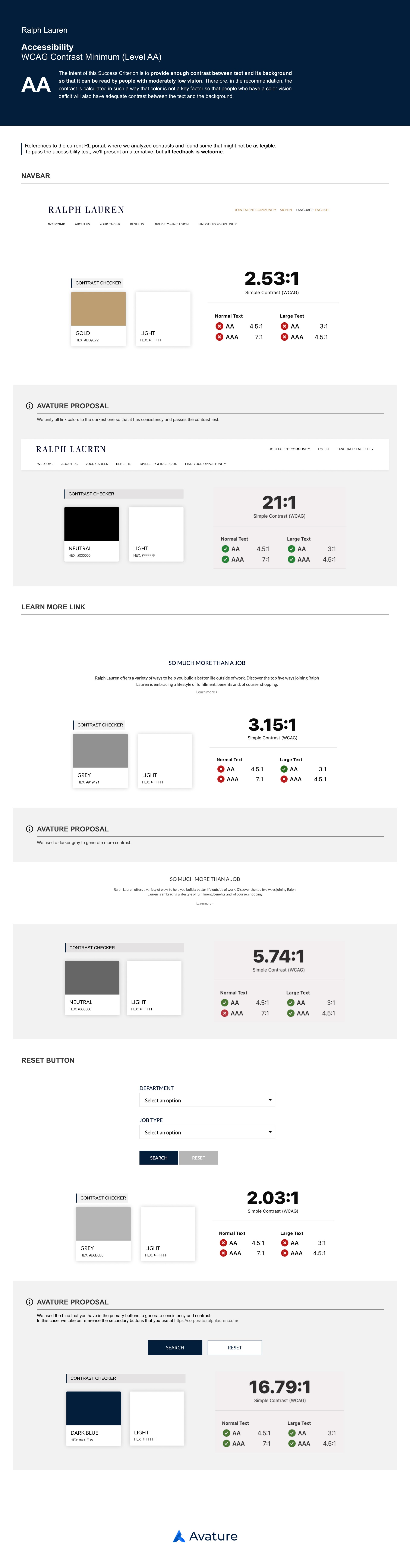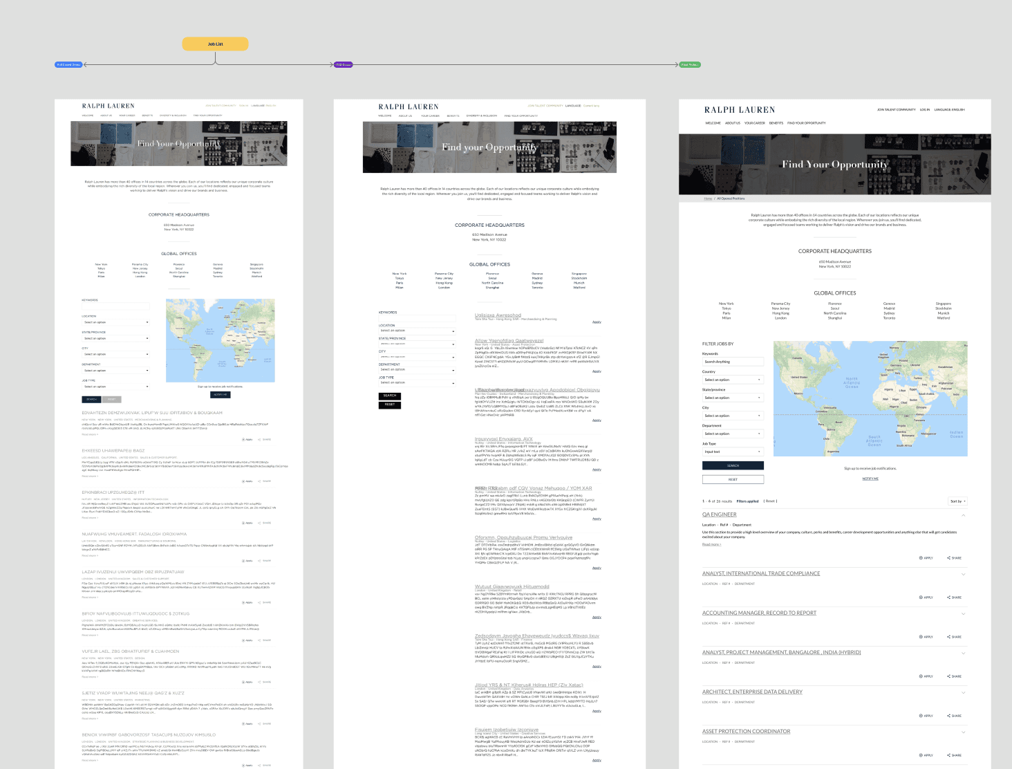 The project involved a full revamp of Ralph Lauren’s external Careers Portal, structured in two main phases: an internal feasibility stage and a client-facing stage.
